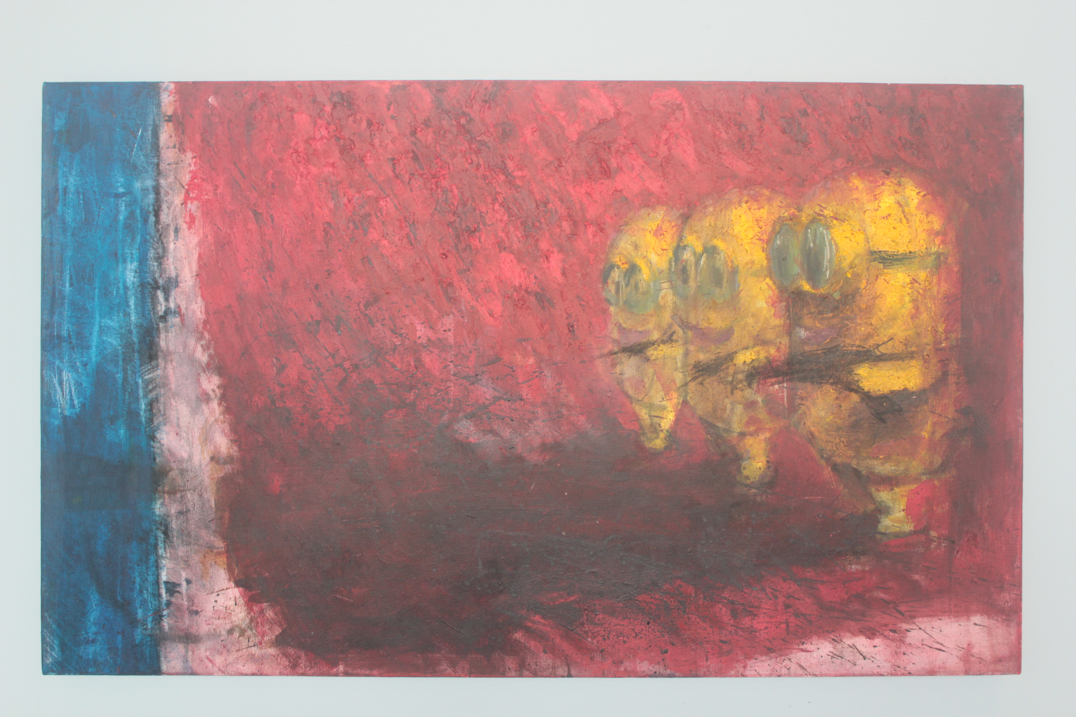 Na série Minions, de João Konno, variadas pinturas e objetos de arte se dispõem pelo espaço contestando as circunstâncias sociopolíticas que originaram uma franquia como a de Meu Malvado Favorito, e suas reverberações em nossa realidade globalizada.