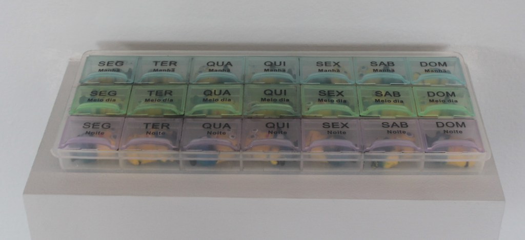 Sem Título (2025). Caixa de remédios e minions de plástico, 22 x 12cm. Fonte: acervo pessoal.